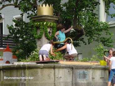 vor Johanni (24. Juni), bei dem 31 Brunnen der Stadt festlich geschmückt