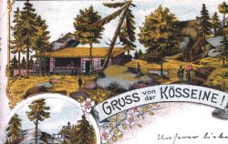 im Kösseinegebiet Zeichnungen an. Bedeutung der Kösseine für den Tourismus Rund um die Kösseine befinden sich die Orte Wunsiedel, Marktredwitz, Bad Alexandersbad, Waldershof, Neusorg, Brand/Opf, Ebnath, Nagel und Tröstau, die zu den beliebtesten Fremdenverkehrsorten des Fichtelgebirges zählen. Sämtliche Orte haben in ihren Werbeprospekten die Kösseine (und das Kösseinehaus) als Ausflugsziel aufgenommen. Der Fichtelgebirgsverein e.V. hat durch ehrenamtliche Helfer 13 markierte Wanderwege mit unterschiedlicher Länge aus allen Himmelsrichtungen zum Kösseinegipfel angelegt. Einheimische und Urlaubsgäste nutzen das Wanderangebot und besuchen das Kösseinehaus bei einem Tagesausflug. Die Forststraße zum Haus ist für den öffentlichen Verkehr gesperrt, nur zu Fuß kann man es erreichen. Das Kösseinehaus ist in das Hauptwanderwegenetz des Fichtelgebirgsvereins e.V. einbezogen. Der 50 km lange „Höhenweg“ bietet die Möglichkeit, den schönsten Wanderweg des Mittelgebirges in mehreren Tagesetappen abzuwandern, wobei in den Vereinshäusern übernachtet werden kann. Das Kösseinehaus liegt am Höhenweg und wird daher von Wanderern für Übernachtungen gerne angenommen. Das Haus kann heuer sein 100-jähriges Bestehen feiern und ist damit das älteste Unterkunftshaus des Fichtelgebirgsvereins. Aus der Geschichte des Kösseinehauses Es ist anzunehmen, dass der erste wetterfeste Unterstand auf dem Gipfel der Großen Kösseine bereits 1805 errichtet wurde. Das preußische Königspaar, Friedrich Wilhem III. mit Gemahlin Luise hielt sich in diesem Jahr vom 13. Juni bis 5. Juli in (Bad)Alexandersbad auf und unternahm mit seiner Begleitung am 17. Juni einen Spazierritt zu Kösseine, "einem Berge, der wohl eine der interessantesten Aussichten über die ganze obere Pfalz, bis in die Gegend von Regensburg und Nürnberg gewährt und erst mit Einbruch der Nacht kehrten kehrten sie von da wieder zurück". Dies berichtete am 27. Juni die Bamberger Zeitung. Für den Ausritt zur Kösseine wurde eigens ein Weg angelegt, der heute noch die Bezeichnung "Königsweg" hat. 1833 wird von einer Hütte auf der Kösseine berichtet, die auf dem höchsten Platz an eine Felswand angebaut war und mit Tisch und Bänken "hinlängliche Bequemlichkeit gewährleistete". Auch 1839 stand noch dieser Unterschlupf, nach dem damaligen Forstmeister Kadner als "Kadnerhütte" benannt. Revierförster Ludwig Seyler aus Furthammer hat dann 1851 ein neues "Wetterdach" bauen lassen. Die Mitglieder der Sektion Fichtelgebirge des Deutsch-Österreichischen Alpenvereins (Vorgängerin des FGV) bauten 1882 auf der Südseite des Gipfels eine gezimmerte Schutzhütte, die 80 Personen Platz bot und 241,32 Mark kostete. Die Steinsäulen der damaligen Hütte stehen auch heute noch dort südlich des Kösseineturms. Auch von einer Bewirtschaftung der Bergstation wird berichtet: es gab Bier, Backsteinkäse und Hartwurst. Wegen der ständig steigenden Besucherzahlen fasste man beim FGV den Entschluss zum Bau einer Blockhütte. 1898 und 1899 bildet die FGV-Hauptkasse je 600 Mark Rücklagen, von privater Seite wurden Spenden in Aussicht gestellt. Erst die außerordentliche Generalversammlung vom 16.3.1902 genehmigt den Antrag der FGV-Ortsgruppen Wunsiedel und Marktredwitz zum Bau des Kösseine nach den Plänen von Baurat Christian Winnerling aus Wunsiedel. Am 23.10.1902 wurde mit dem Forstärar ein notarieller Vertrag wegen Grundstücksüberlassung geschlossen, vor Wintereinbruch des Jahres 1902 war der Rohbau des Hauses vom Baugeschäft Köppel aus Marktredwitz fertiggestellt worden. (Baukosten 12.500 Mark, 1.000 Mark für Inneneinrichtung). Die Einweihungsfeier fand am 24.5.1903 statt. Schon bald planten die FGV-Ortsgruppen Wunsiedel und Marktredwitz einen Anbau wegen des starken Besucherstromes. 1912 wurde im Osten des Hauses eine Glasveranda auf massivem Unterbau errichtet (heute: Wunsiedler- und Marktredwitzer Zimmer). 13.000 Mark waren hierfür aufgebracht worden. 1955 wurde die Freiterrasse geschaffen und nach einem Brand im Dachgeschoss wurde 1977 der Übernachtungstrakt neu aufgebaut. Zahlreiche Reparaturen im Laufe der Jahrzehnte verschlangen erhebliche Geldmittel. Im Juli 1997 übernahm Winfried Pfahler aus Wunsiedel als "FGV-Hüttenwart" die Betreuung des Kösseinehauses. Nach einer eingehenden Besichtigung des Hauses stand für ihn fest, dass eine grundlegende Sanierung bis zum 100järigen Hausjubiläum notwendig war. Es wurde ein Bauausschuss gebildet, dem folgende FGV-Mitglieder angehörten: Winfried Pfahler, Dietmar Herrmann, Gerhard Buth, Albert Jobst, Bruno Stöhr, Heinrich Henniger. Im März 1998 wurde gemeinsam mit der Frankenpost eine Spendenaktion ins Leben gerufen, an der sich viele Heimat- und Wanderfreunde beteiligten. Aber nicht nur Geld-, sondern auch Sachspenden von Handwerksbetrieben und Firmen verhalfen dem Bauausschuss und dem Hüttenwart zur Verwirklichung der Pläne. Das Vereinszimmer, Wunsiedler Zimmer und Marktredwitzer Zimmer, der Vorraum, der Hausflur und die Pächterwohnung konnten gründlich saniert werden. Für das Übernachtungsgeschoss wurde eine Etagendusche eingebaut und es wurden neue Betten angeschafft. Die FGV-Hauptkasse finanzierte den Neubau der Toiletten, den Bau einer frostsicheren Wasserleitung vom Pumpenhaus zum Unterkunftshaus und eine biologische Nachreinigungsstufe bei der Abwasserbeseitigung. Ein "Schindelkleid" aus Lärchenholz, einmalig im Fichtelgebirge, wurde von Mai bis September 2000 von freiwilligen Arbeitskräften unter Anleitung von Schindelmacher Adolf Fröhlich aus Ebnath in 750 Stunden an der Außenfassade des Hauses angebracht. Von 1998 bis 2001 wurden weit über 500.000 DM investiert, ohne die Sachspenden der verschiedenen Firmen und die ehrenamtliche Tätigkeit von Vereinsmitgliedern mitgerechnet. Die Renovierung des Kösseinehauses ist als eine großartige Gemeinschaftsarbeit von Fichtelgebirgsverein und von Firmen und Handwerker zu werten. Dazu kommt der ehrenamtliche Einsa