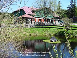 75 Jahre Unterkunftshaus Seehaus Alfred Rauh Das Seehaus wird heuer 75 Jahre alt. Es ist natürlich schon viel älter, das ehemalige "Zinnhäuschen", "Zinnhaus", "Zechenhaus". Aber dieses Jahr ist ein Dreivierteljahrhundert vergangen, seit das von Wanderern und Ausflüglern gerne besuchte Unterkunftshaus, das 922 m ü. NN am Nordwesthang des Seehügels zwischen Nußhardt und Platte auf einer großen Waldblöße mit Blick zum Ochsenkopf steht, von der FGV-Ortsgruppe Hof erbaut wurde. Das Jubiläum gibt Anlass, sich mit der bis ins 16. Jahrhundert zurückreichenden Entstehungsgeschichte des Hauses, die aufs engste mit der Geschichte der ehemaligen Zinnbergwerke in der Schneeberggruppe verbunden ist, zu befassen. Bereits 1530, so schreibt Pfarrer Scherber in seinen "Materialien des Pfarrsprengels Bischofsgrün 1809", wurde auf dem Westabhang der Fahrenleite „Seehügel" angefangen, nach Zinnerz zu graben. Es kann somit angenommen werden, dass schon zu dieser Zeit für die Arbeiter der am Seehügel gelegenen Zinnwäsche eine Unterkunft, das "Zinnhäuschen"', wie es damals hieß, geschaffen wurde - das erste Seehaus. Besitzer der Zinnwäsche war eine Familie Waldenfels. Ihr folgte eine Wunsiedler Gesellschaft und 1601 machte dort ein Holzhauer namens Jakob Herrgott eine Zinnseife auf. Diesem wurde jedoch die Erlaubnis zum Betrieb wieder entzogen, da er wilderte und Wilddieben Unterschlupf gewährte. "Jener Jakob Herrgott, bei dem zweifelhafte Personen einkehrten, darf als einer der ersten "Seehauswirte" betrachtet werden, wenn auch mit ihm nicht viel Staat zu machen ist", wie Paul Held, Schriftleiter des "Siebenstern" in Heft 5/1956 des "Siebenstern" schreibt. 1762 errichtete man ein kleines, primitives hölzernes „Zechenhaus“, so ist im "Wanderführer durch das Fichtelgebirge, VI. Ausgabe" zu lesen. Wegen Baufälligkeit wurde es 1803 abgerissen, jedoch schon im nächsten Jahr wieder neu erbaut. Am 21. Februar 1805 brannte dieses neue Haus ab, wobei die achtjährige Tochter des damaligen Bewohners Karl Unger ums Leben kam. Ein im gleichen Jahr errichtetes Haus wurde 1818 durch Gottlieb Reißmann, den "Seebüttner", wesentlich verbessert. 1839 wird erstmals das Zechenhaus als "Seehaus" bezeichnet; für die Namensgebung war sicher seine Lage oberhalb des Fichtelsees maßgebend. Weitere Bewohner waren 1841 Andreas Thiermann, dann Johann Reißmann bis 1881, anschließend bis 1904 Andreas Kugler und Forstwart Voit aus Klausenhaus bei Mehlmeisel bis 1908. Ihm folgten die Pächter Schindler, Heinrich Bedall und ab 25. März 1926 Waldwärter Georg Prell, der sechs Jahre lang (bis 30. September 1934) das 1928 errichtete neue Seehaus bewirtschaftete. Der 1550 begonnene Bergbau ruhte zeitweise, obwohl das Zinn gut, die Ausbeute jedoch gering war. Auch nach dem 1. Weltkrieg wurde nochmals mit dem Zinnbergbau begonnen, der jedoch 1926, trotz technischer Verbesserungen (Industriegleis, kleine Lokomotive) wegen Unrentabilität ganz eingestellt wurde. Die damaligen Bewohner der Häuser waren Bergleute, später Forstbedienstete. Sie bewirteten vorbeikommende Wanderer mit Milch, Bier, Brot, Butter. Prominenteste Besucher in dieser Zeit waren Johann Wolfgang von Goethe, der mit seinem Kammerherrn Karl Ludwig Knebel und dem Botanicus Friedrich Gottlieb Dietrich am 1. Juli 1785 anlässlich einer geologischen Exkursion von Wunsiedel aus zum Seehaus kam. An seinen Aufenthalt erinnert eine von der OG Hof am 17. September 1978 aus Anlass der 50-Jahr-Feier am Seehaus angebrachte Granittafel. "Hoch zu Roß" kamen die Romantiker Ludwig Tieck und Wilhelm Wackenroder am 26. Mai 1793 zum Seehaus, als sie das Fichtelgebirge bereisten. Ganz hohen Besuch bekam das Seehaus fast 200 Jahre später, als Altbundespräsident Prof. Dr. Karl Carstens anlässlich des Europäischen Umweltjahres 1987/88 sich über die Waldschäden im Fichtelgebirge informierte und mit dem damaligen Präsidenten des Verbandes Deutscher Gebirgs- und Wandervereine Konrad Schubach am 26. September 1987 im Unterkunftshaus einkehrte. Doch nun zum Neubau 1928. Eine vom kgl. Forstamt Fichtelberg dem FGV am 23. April 1916 gemachtes Angebot zur Pachtübernahme und Bewirtschaftung des Seehauses konnte wegen der damaligen Verhältnisse (es war Krieg) nicht angenommen werden. Erst am 15. Oktober 1925 kam der FGV auf dieses Angebot zurück. Schon zu diesem Zeitpunkt machte sich der Hauptverein mit dem Gedanken vertraut, das Objekt unter die Obhut der OG Hof zu stellen, nachdem sich diese schon vorher für das Seehaus interessierte, "um für Hof einen Stützpunkt im Fichtelgebirge zu bekommen" (Zitat Ortsgruppenprotokoll). Auch der Verwaltungsausschuss des Hauptvereins stimmte in seiner Sitzung vom 20. März 1926 für eine Betreuung durch die OG Hof. Nun stellte sich jedoch heraus, dass der Forst inzwischen mit der Bergwerksgesellschaft "Wilhelmsglück" einen Pachtvertrag für die Zeit bis 30. Sept. 1929 abgeschlossen hatte. In Verhandlungen mit dieser Gesellschaft und mit Zustimmung der Regierung wurde dieser Vertrag zum 19. Januar 1926 aufgelöst. Der FGV sicherte sich nun sofort das Seehaus für seine Zwecke und bereits am 26. März 1926 konnte der Hauptverein mit dem Forstärar einen Pachtvertrag abschließen, in dem der Verein die Erlaubnis erhielt, im Seehaus einen einfachen Wirtschaftsbetrieb ohne Übernachtungsmöglichkeit zu betreiben; Pachtzeit sechs Jahre. Da das Seehaus im damaligen Bereich der OG Fichtelberg stand, kam man auf die Idee einer gemeinsamen Verwaltung des alten Hauses durch die OG Fichtelberg und Hof mit einem Verwaltungsausschuss, zusammengesetzt entsprechend der Mitgliederstärke beider Ortsgruppen. Fichtelberg erstellte einen Vertragsentwurf hiefür, der von Hof in der vorgelegten Form nicht angenommen wurde. Nach erfolglosen Verhandlungen vom 25. Juni 1926 nahm Fichtelberg den Entwurf zurück und überließ der OG Hof (noch mit Obmann Heinz Will) die gesamte weitere Arbeit. Im 4. Quartal 1926 traten dann sowohl in der OG Hof als auch