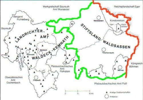 Walderbach Erste Säkularisation Nach langer Blüte erlebte die Abtei im 16. Jahrhundert schwere Schicksalsschläge. Während des Landshuter Erbfolgekrieges (1503/05) wurden Waldsassen geplündert und niedergebrannt. Wenige Jahre nach dem beginnenden Wiederaufbau (ab 1517) nutzte Pfalzgraf Friedrich II. die Bauernunruhen von 1525 um seinen Herrschaftsanspruch über das Kloster durchzusetzen. Diesen leitete er daraus ab, dass sich die Abtei zu Beginn des 15. Jahrhunderts unter den Schutz des Pfalzgrafen gestellt hatte. 1537 ließ er den Abt gefangen nehmen und 1543 das Kloster besetzen. In der Folge nahmen die landesherrlichen Ûbergriffe weiter zu. Die nach kanonischem Recht gewählten Äbte wurden durch weltliche Administratoren ersetzt. Das Kloster büßte seine Reichsunmittelbarkeit ein.1556 wurde Waldsassen unter dem zum Luthertum konvertierten Kurfürsten Ottheinrich säkularisiert und 1560 die letzten Mönche vertrieben. 1571 kam das Stiftsland an die Kurpfalz. Ortsgründung von Waldsassen Ab 1613 begann bei der einsam gelegenen Zisterze die Errichtung einer bürgerlichen Ortschaft durch die Familie Geisel ausTirschenreuth, die hier eine Tuchmanufaktur ansiedelte. Das ehemalige Kloster selbst diente als kurfürstlicher Gutshof und gelegentlicher Aufenthaltsort der Landesherren. So empfing im Abteischloss der „Winterkönig“ Kurfürst Friedrich V. von der Pfalz die Huldigung der Stände Böhmens. Nachdem dem bayerischen Herzog Maximilian I. im Dreißigjährigen Krieg die pfälzische Kurwürde übertragen und als Kriegsentschädigung 1628 die Oberpfalz mit dem Stiftland zugesprochen worden war, erfolgte durch den Jesuitenorden die Rekatholisierung. Die Wiederaufnahme der klösterlichen Tradition in Waldsassen gelang aber erst unter Kurfürst Ferdinand Maria ab 1661. Ausgestattet mit landesherrlichen Geldern Klöster in Bayern: Waldsassen begannen drei Zisterzienser aus Fürstenfeld den Wiederaufbau des Klosters Waldsassen unter formeller Administration des Kurfürsten.1669 wurde Waldsassen zum Priorat von Fürstenfeld. In der Zwischenzeit waren immer mehr Mönche von Fürstenfeld aus nach Waldsassen gekommen, um sich dort der Seelsorge, der Liturgie und der klösterlichen Ökonomie zu widmen. 1690 wurde das Kloster wieder zur Abtei erhoben und erhielt seinen Besitz zurück. Verwehrt blieb Waldsassen jedoch die Wiedereinsetzung des Abts als Landesherrn. Dieser war fortan der bayerische Kurfürst. Zweite Blütezeit des Klosters Nun begann die zweite Blütezeit Waldsassens. Die gesamte Klosteranlage war nach einer Brandschatzung durch schwedische Truppen im Dreißigjährigen Krieg noch in desolatem Zustand. 1681 wurde daher ein Neubau in Angriff genommen. Die bedeutenden Kirchenbaumeister Abraham Leuthner und die Gebrüder Dientzenhofer schufen hier eine der großartigsten Barockkirchen Bayerns. 1704 fand die feierliche Weihe statt. 1727 war die Klosterbibliothek vollendet. Mehr noch als durch ihr prachtvolles Deckengemälde und die Stuckarbeiten ist die Waldsassener Bibliothek berühmt geworden durch die lebensgroßen, geschnitzten Holzfiguren von Karl Stilp. Der gebürtige Waldsassener schuf u.a. zehn Charakterfiguren, die vermutlich die verschiedenen Facetten des Hochmutes darstellen: Dummheit, Zorn, Eigenbrötelei, Spottlust, Prahlerei, Ignoranz, Hoffart, Eitelkeit, Neugierde und Heuchelei. Zum Kloster gehörte auch die berühmte Kirche Zur Heiligsten Dreifaltigkeit in Kappl auf dem Glasberg. Dort hatte bereits im Mittelalter eine Wallfahrt existiert. Sie fand im Barock wieder regen Zulauf, sodass eine neue und größere Kirche notwendig wurde. Georg Dientzenhofer gelang es in diesem zwischen 1685 und 1689 errichteten Sakralbau der Idee der Trinität auch architektonischen Ausdruck zu verleihen. So entstand eine der originellsten Kirchen des Barock in Süddeutschland. Zweite Säkularisation Im Jahr der Säkularisation 1803 erlangte