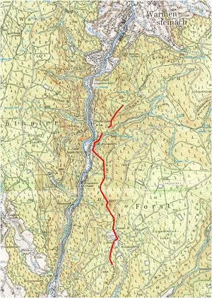 Der Roßsteig im Tal der Warmen Steinach zwischen Wurzstein und Schanzberg Harald Herrmann Ein Stück romantische Natur kann derjenige erleben, der die Spuren eines längst vergessenen Weges sucht, der vermutlich einst eine nicht unwesentliche Bedeutung für das Steinachtal hatte. Dieser Roßsteig ist namentlich in keiner Wanderkarte vermerkt und auch die topographische Karte erwähnt den einstigen Weg in keiner Weise. Dennoch lohnt es, sich dieser alten Verbindung einmal etwas genauer zu widmen. Über die Bedeutung des Roßsteigs ist