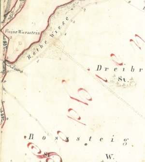 von Interesse. Doch zunächst zur Geographie. Vom Schlosshügel oberhalb von Sophienthal, einer mittelalterlichen Ringwallanlage, zieht sich der Weg über die Einzel Neuhaus an den Osthängen des Steinachtals entlang. Nach einigen Kilometern erreicht der Roßsteig die Burgruine Wurzstein. Die Waldabteilung kurz vor dem Burghügel trägt ebenfalls den Namen „Rosssteig“. Von der Ruine aus steigt der Weg am Kamm des Berges hinauf auf das Plateau des Schanzberges. Hier könnte, wie in dem Buch „Burgruine Wurzstein im Steinachtal“ dargelegt, einst eine Fliehburg existiert haben. Auch am Westhang des Steinachtals, im Bereich der sagenumwobenen Königsheide, finden sich Hinweise auf einen Roßsteig. Hierbei ist die Beschreibung einer Exkursion des Historischen Vereins von Oberfranken aus dem Jahr 1886 von Interesse. Die Herren des Vereins gingen zur damaligen Zeit von der Möglichkeit einer heidnischen Kultstätte auf den Höhen der Königsheide aus, die in Verbindung mit den umliegenden Höhen stand. So spielten in diesen Überlegungen beispielsweise der Ochsenkopf (Ossenkopf) und der Wurzstein (Wuotansstein) eine wesentliche Rolle. Bleibt man bei der Namensdeutung, so wäre noch eine Beziehung interessant. Von Untersteinach in Richtung Königsheide liegt die Waldabteilung „Rosssteig“, wird in der Beschreibung der Exkursion berichtet. Über diese Waldabteilung war ein bequemer Aufstieg zur Hochebene möglich. Auf der nördlichen Seite des lang gezogenen Rückens der Königsheide findet sich in Warmensteinach der Ortsteil „Hängweg“, der sich etwa zwischen dem Schulhaus und der Sprungschanze erstreckt. Die Bezeichnung „Hängweg“ leitet sich von „Hengstweg“ ab. Auch von dieser Seite aus ist ein verhältnismäßig einfacher Aufstieg zur Königsheide möglich. Somit befinden sich auf beiden Seiten der oberen Steinach zwei Roßsteige, die vermutlich in Warmensteinach durch einen Hengstweg verbunden waren. Dieser Weg als Ringweg betrachtet verbindet die mittelalterliche Anlage auf dem Schloßhügel, die ehemalige Burg Wurzstein, den Schanzberg, auf dem eine Fliehburg existiert haben könnte und die Königsheide, von der nicht nur viele Sagen von einem mächtigen Schloss raunen, sondern auch eine Waldabteilung den Namen „Altes Schloß“ trägt. Im Rahmen seiner Forschungsarbeiten zu seinem neuen Buch über die Burgruine Wurzstein ist dem Autor aufgefallen, dass nördlich des Halsgrabens der ehemaligen Burg ein Teil des alten (Roß-) Steigs wieder sichtbar ist. Deshalb wurde versucht, das Teilstück des alten, vielleicht einst bedeutungsvollen Weges zwischen Wurzstein und dem Schanzberg zu suchen. Diese Suche verlief im ersten Stück bis kurz unterhalb der Forststraße zum Wurzbachweiher recht erfolgreich. Der gesamte Pfad zieht sich fast abenteuerlich auf dem Kamm des Bergrückens hin und trägt mit seinem steilen Abfall zum Wurzbach hin nahezu alpine Züge. Von der Waldstraße aus ist der Steig nicht