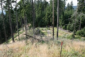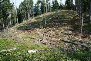 wieder entlang des Kamms zu Tage zu treten. Der Windbruch in jüngerer