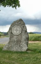 einen Granitfindling auf. Eine achteckige Steinplatte