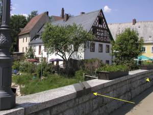 Die Brücke über die Kösseine war einst Grenzpunkt zwischen dem markgräflich-brandenburgischen und dem egerischem Territorium. Nördlich des Bachlaufs die egerische Enklave Redwitz und südlich der markgräfliche Ort Dörflas, und hier gab es sogar eine Zollstation. Die territoriale Zweiteilung der Brücke führte auch zu ständigen Auseinandersetzungen. 1936 kam dann der Ort Dörflas zu Marktredwitz. Einen Neubau der Dörflaser Brücke, wie sie nun genannt wird, erfolgte 1987/88.