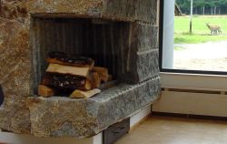 gebucht werden. Eine Kaminecke aus blauem Kösseinegranit
