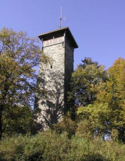 Punkt steht ein Aussichtsturm und Unterkunftshaus der